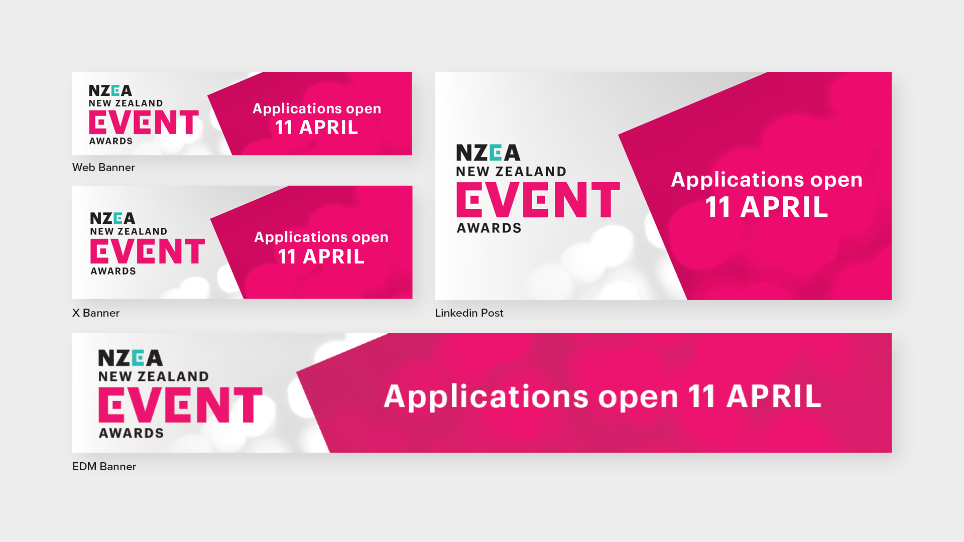A collection of work for the NZÂ Events Association over the last five years, including a refreshed logo lockup, web banners and infographics for both the organisation and their annual Event Awards.